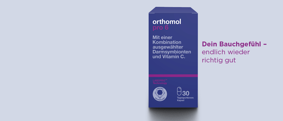 Ein gesunder Darm ist wichtig für das Wohlbefinden des gesamten Organismus. Eine Vielzahl von Mikroorganismen besiedeln den Darm und sorgen für eine stabile Balance. Doch beispielsweise die Einnahme von Medikamenten oder auch Umwelteinflüsse können die Darmflora und somit den gesamten Darm aus dem Gleichgewicht bringen. Genau hier setzt Orthomol Pro 6 an.