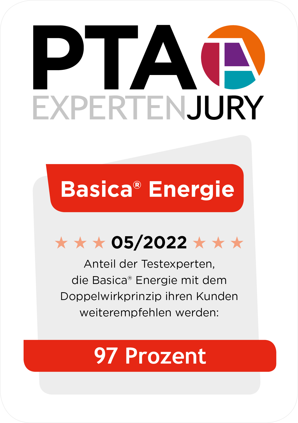 Das Ergebnis ist beispiellos: 97% der Testexperten werden Basica® Energie mit dem Doppelwirkprinzip weiterempfehlen!