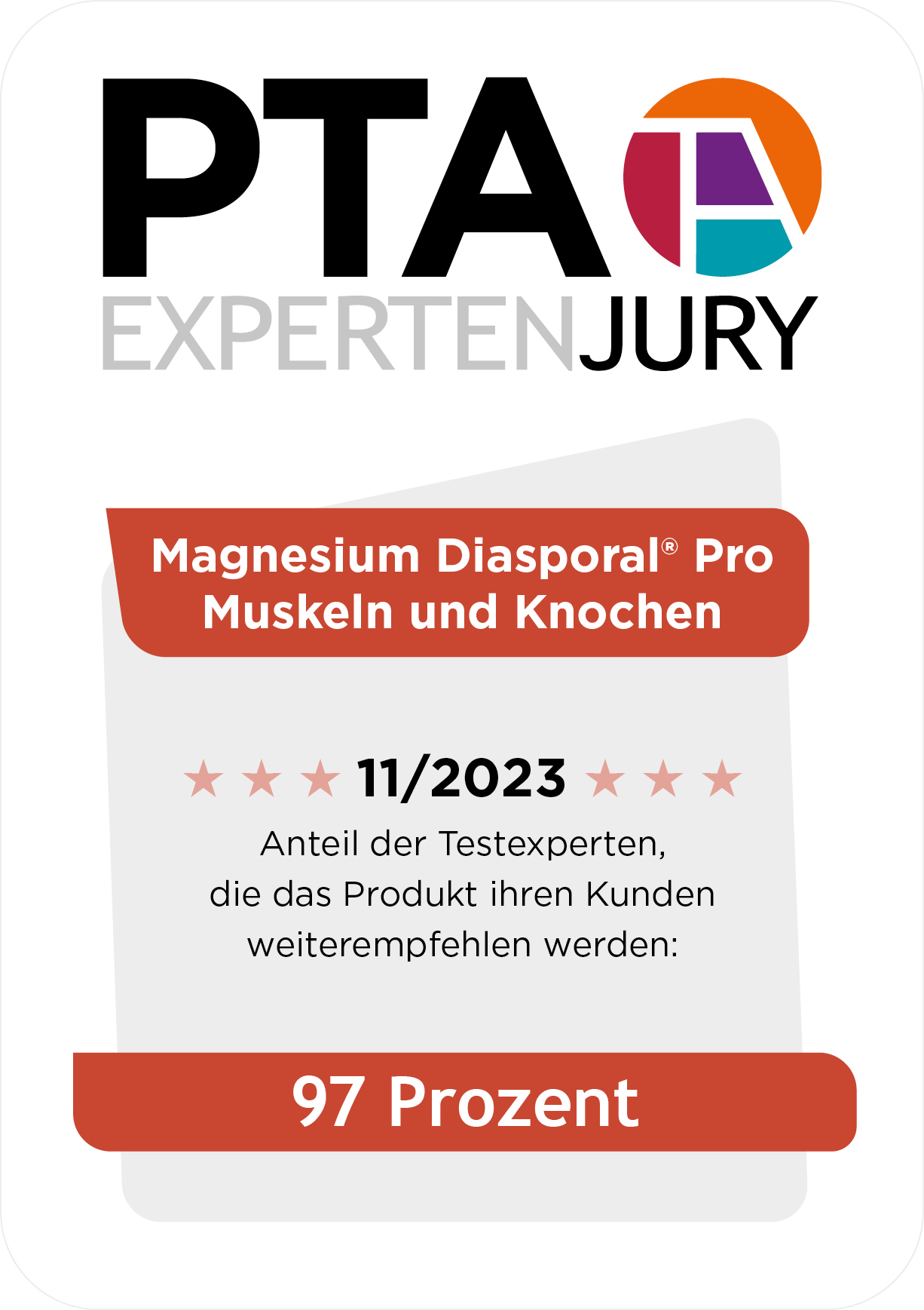 Magnesium unterstützt eine normale Muskelfunktion. Vitamin D3 und K2 tragen zur Erhaltung normaler Knochen bei. Vitamin D3 leistet einen Beitrag zur normalen Funktion des Immunsystems. Vom 2. bis 15. November hatten 1000 Testexperten die Möglichkeit, Magnesium Diasporal® Pro Muskeln und Knochen direkt zu testen. Insgesamt 800 PTA beurteilten den neuesten Zuwachs der Familie.