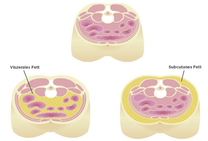 Einen großen Anteil am metabolischen Syndrom hat das viszerale Fett. Das Bauchfett umhüllt die inneren Organe. Seine Zellen, die Adipozyten, sind hormonell aktiv und produzieren bestimmte Proteine, die Adipokine. Zu diesen mehreren hundert Signalstoffen zählen beispielsweise