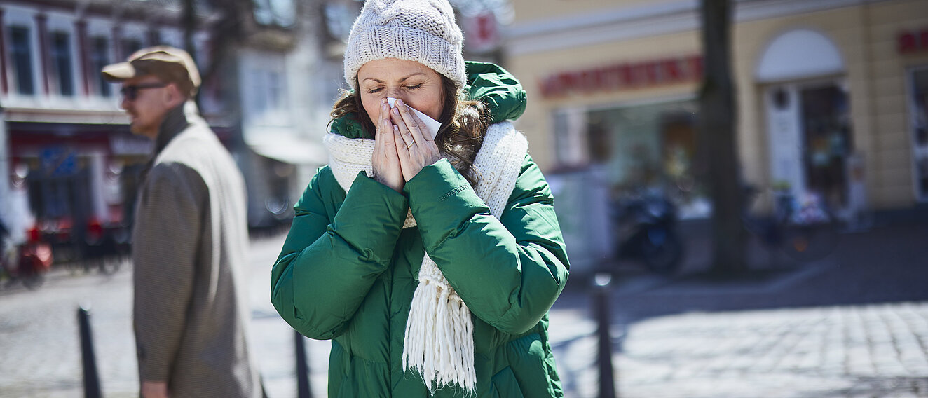 Viele Kunden mit Sinusitis oder Bronchitis wünschen sich schnelle Hilfe, um möglichst bald wieder fit zu sein. Um Symptome wie Druckkopfschmerz, Schnupfen und Husten zu lindern und der Ausweitung des akuten Atemwegsinfekts entgegenzuwirken, empfehlen Sie GeloMyrtol® forte. Das pflanzliche Spezialdestillat aus rektifiziertem Eukalyptus-, Süßorangen-, Myrten- und Zitronenöl aktiviert die Selbstreinigung der gesamten Atemwege, verflüssigt zähen Schleim und erleichtert den Abtransport von Erregern [1–4]. So werden die Atemwege befreit und die Krankheitsdauer verkürzt.