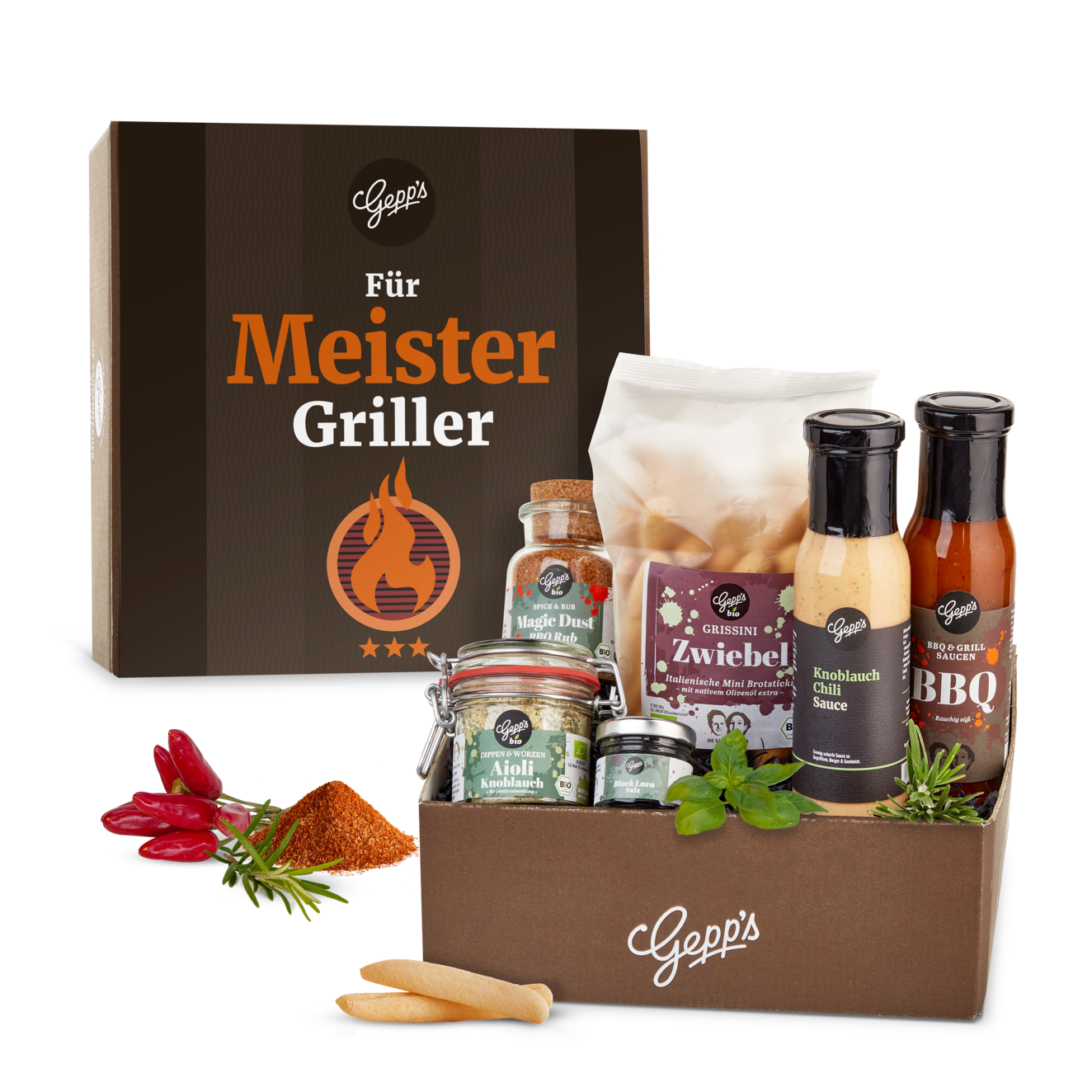 Beim Grillen ist Genießen und Chillen das Schönste. Und mit unseren Saucen ist für jeden der Lieblingsgeschmack dabei. Die angenehm scharfe Chili-Knoblauch-Sauce peppt Tofu und Steaks auf, die rauchige BBQ-Sauce passt zum veganen Burger genauso gut wie zum Lammwürstchen. Intensiven Geschmack entfaltet der Bio-Aioli-Dip – herrlich auch zu Gemüsesticks. Auch das Magic Spice-Gewürz in Bio-Qualität ist ein magischer Alleskönner – für Dressings, Saucen und Würzen einfach genial. Das gilt auch für das Black Lava Salz mit seiner charaktervollen Note. Würziges zum Knabbern lieben einfach alle – mit den Zwiebel-Grissini machen Sie sie glücklich. Ein Hoch auf die Grillmeister: innen! Im Set enthalten sind BBQ-Sauce (250 ml), Chili-Knoblauch-Sauce (250 ml), Grissini Zwiebel (125 g), Bio-Magic Dust BBQ-Rub (115 g), Bio Aioli Dip (60 g), Mini Black Lava Salz (30 g).