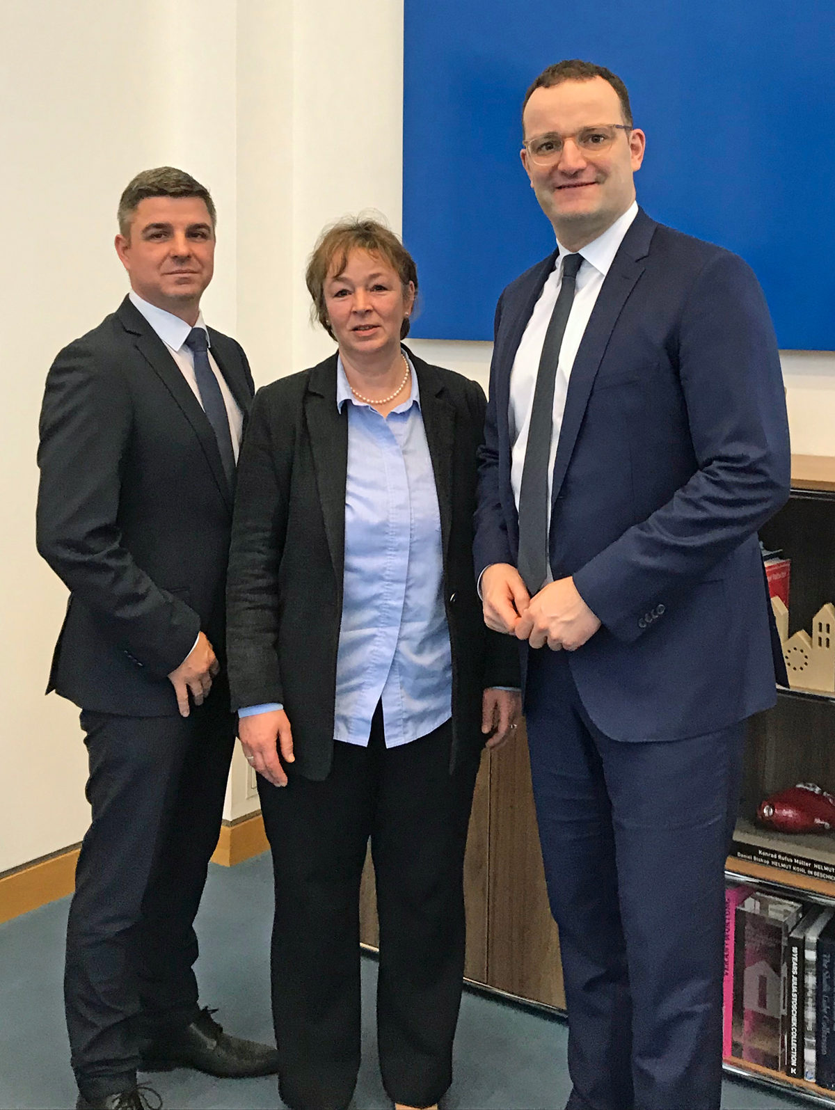 Diesen Montag fand in Berlin ein knapp einstündiges Gespräch zwischen Bundesgesundheitsminister Jens Spahn (CDU) und den beiden Vorsitzenden der Apothekengewerkschaft ADEXA statt. Andreas May und Tanja Kratt schilderten dem Minister die tarifliche Situation der Angestellten in öffentlichen Apotheken. Dabei ging es auch um die Auswirkungen des EuGH-Urteils auf die Tarifgehälter.