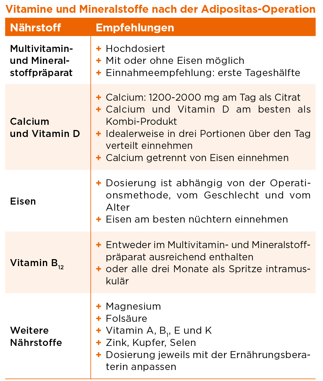 Der Vitamin- und Mineralstoffbedarf muss nach einer Magenverkleinerung lebenslang bedacht werden.