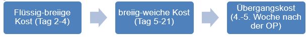 Nach der Operation ist die Empfindlichkeit im Verdauungstrakt sehr hoch, die adipösen Menschen haben eine neue Körperwahrnehmung und die Portionen müssen erstmal sehr klein sein. Der Kostaufbau lässt mit dem eines Säuglings nach der Stillphase vergleichen. Viele adipöse Menschen wünschen sich direkt nach der Operation einen Plan mit konkreten Portionen, was sie an welchem Tag essen dürfen. Dies ist allerdings nicht möglich, denn jeder Körper reagiert und verträgt unterschiedlich.