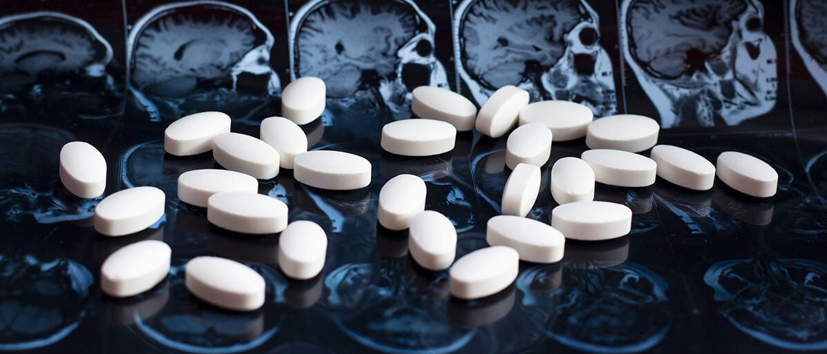 weiße Tabletten liegen vor einem Gehirn-Röntgenbild© Ildar Imashev / iStock / Getty Images Plus