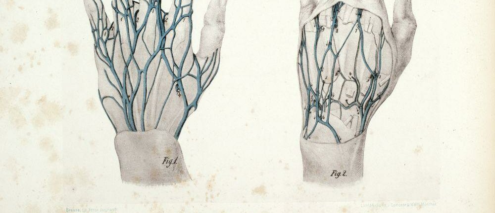 Traut man sich hinein, sieht man zwar auch Bücher, so wie es sich für eine Ausstellung in einer Bibliothek gehört, aber die Blicke fallen auch auf in Alkohol eingelegte Herzen und Nieren, menschliche Schädel oder präparierte Plazenten. Worum also geht es hier? All diese Objekte sind Teil einer Ausstellung, die die Universitätsbibliothek zusammen mit dem Institut für Anatomie und Zellbiologie erarbeitet hat und in der ganz unterschiedliche Aspekte der Anatomie gezeigt werden.