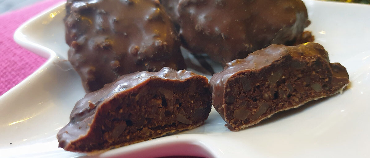 Ich koche dafür einen gewöhnlichen Schokoladen- oder Haselnuss-Pudding. In den Pudding rühre ich einen halben Teelöffel Lebkuchengewürz und etwa 30 Gramm gehackte Mandeln. Den Pudding lasse ich abkühlen und rühre ihn dabei mehrfach durch, damit sich keine Haut bildet. Wer mag schlägt noch etwas Sahne steif (etwa 80 bis 100 ml) und zieht sie unter den Pudding.