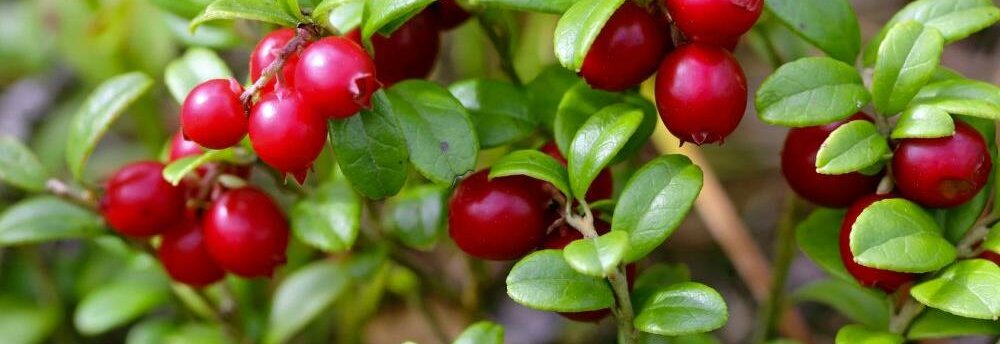 Die ursprünglich in den Hochmooren Nordamerikas beheimate Cranberry wird heute großflächig im Norden der USA angebaut. Die Pflanze wächst als flächig kriechender Strauch auf sauren Böden und wird ungefähr 20 Zentimeter hoch. Der Zwergstrauch bildet mit seinen bis zu einem Meter langen Wurzeln und Ranken geschlossene Teppiche. Seine spitz zulaufenden Blätter sind ein bis zwei Zentimeter lang und verbleiben das ganze Jahr über an den Zweigen. Zwischen Juni und Juli blüht Cranberry mit rosa-weißen Blüten, aus denen sich im Herbst rubinrote Beeren entwickeln.