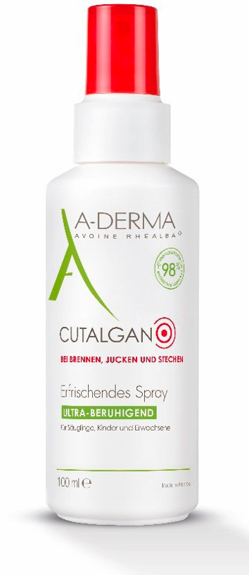 CUTALGAN® beruhigt auf der Stelle Denn seit Januar 2020 gibt es eine wirksame Soforthilfe von A-DERMA, der arzneipflanzenbasierten Dermo-Kosmetikmarke aus dem Hause Pierre Fabre. Das neue CUTALGAN® ultraberuhigende Hautspray wurde zur äußeren Anwendung auf schmerzenden Hautstellen entwickelt. Es ist bereits für Säuglinge ab einem Monat und damit für alle in der Familie geeignet. Die patentierte Spray-Textur kann gezielt auf schmerzende Hautareale aufgesprüht werden, muss nicht mit den Händern verteilt werden und verläuft nicht.