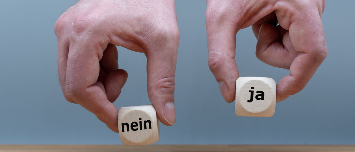 Ob es die Überstunde ist, die Umzugshilfe für den Freund, die Einladung zu einer Party: „Nehmen Sie sich grundsätzlich eine Bedenkzeit“, rät Martin Wehrle. So lässt sich vermeiden, dass man reflexartig zusagt – und erst danach spürt, dass einem die Entscheidung Bauchgrummeln bereitet. In der Bedenkzeit sollte man prüfen, ob man etwas wirklich tun möchte. Sagt das Bauchgefühl „Nein“, sollte man das offen ansprechen. Martin Wehrle nennt einen Gedanken, der dabei helfen kann: „Ein ehrliches Nein ist besser als ein geheucheltes Ja. Denn im Grund genommen ist es anderen gegenüber ganz schön unverschämt, einen Willen vorzuspielen, wo keiner ist.“ Manchmal kann es auch helfen, Zettel mit „Ja“ und „Nein“ zu beschriften, sie auf dem Boden auszulegen und zu überlegen: Was zieht mich mehr an? „Die meisten Menschen spüren sofort, welcher Pol die stärkere Zugkraft hat“, sagt Wehrle, der diese Methode auch in Beratungen anwendet.