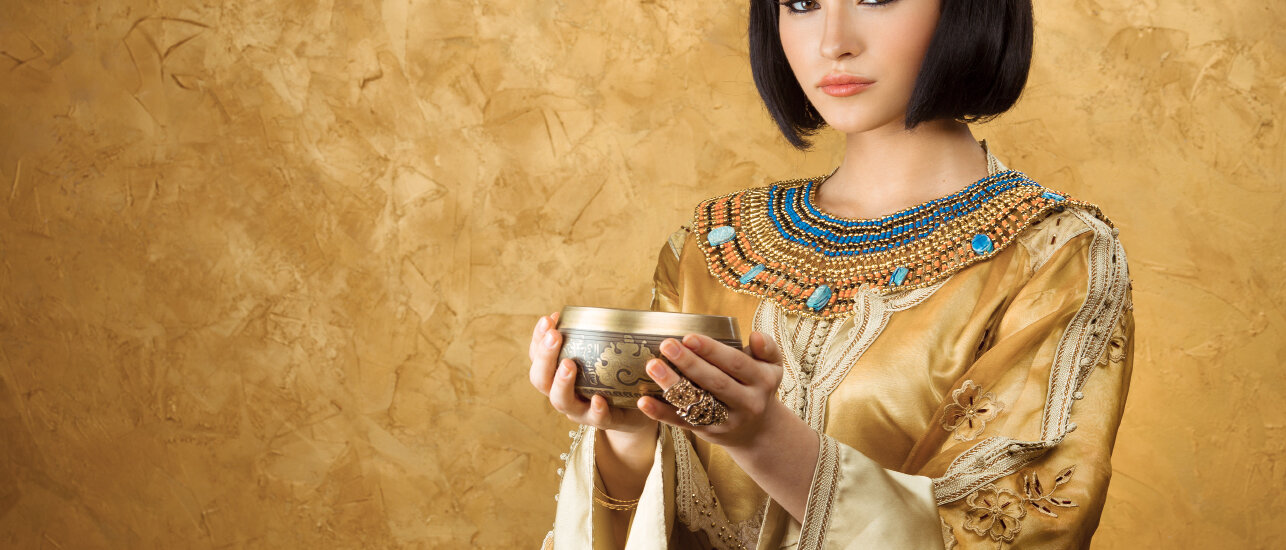Noch bevor die Pyramiden erbaut wurden, betrieb das alte Ägypten einen regelrechten Schönheitskult: Es war undenkbar für die Mitglieder des Herrscherhauses und des Hofstaates, sich ungeschminkt der Öffentlichkeit zu zeigen – übrigens auch für Männer. Horus, dem Gott des Himmels und des Lichtes zu Ehren malte man sich dunkle Umrandungen um die Augen. Dazu wurden Eisenoxid, Antimon und Malachit mit Wasser vermischt und mithilfe diverser, erstaunlich differenzierter Gerätschaften aufgetragen – das beweisen Grabfunde.