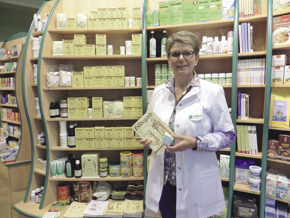 Begeisterte Belegschaft Denn diese Apotheke hat ein besonders Steckenpferd: die Medizin der Hildegard von Bingen, die als Äbtissin vor 850 Jahren lebte und eine Gesundheitslehre schrieb. Sie hat auch heute noch viele Anhänger; selbst Ernährungswissenschaftler und Naturheilkundler verweisen auf die verblüffend treffsicheren Kommentare in ihrer „Physica“. Vor vielen Jahren seien einmal drei PTA und eine PKA aus seiner Apotheke an den Bodensee zu einem Seminar über Hildegard gefahren, erzählt der Inhaber und Apotheker Bernhard Fuchs. „Sie kamen unglaublich begeistert zurück.“ Und so hat sich die kleine Apotheke ihr eigenes Fachgebiet geschaffen: „Es ist von selbst entstanden und wird von allen mitgetragen.“ Die Kunden – das erzählen alle Angestellten unisono – kommen von weit her. „Wir haben ja alles da.“ Gemahlenen Fenchel gibt es hier, Galganttabletten, Mutterkümmel, Flohsamen, Bertram und das Pulver für die bekannten Hildegard-Gewürzplätzchen. Hier stehen Tinkturen, Elixiere und spezielle Pflanzenauszüge. Und natürlich jede Menge Literatur über die berühmte Ordensfrau und ihre Lehren.