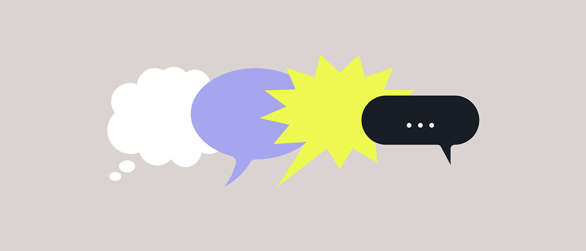 Vier Sprechblasen in unterschiedlichen Farben und Formen© nadia_bormotova / iStock / Getty Images Plus