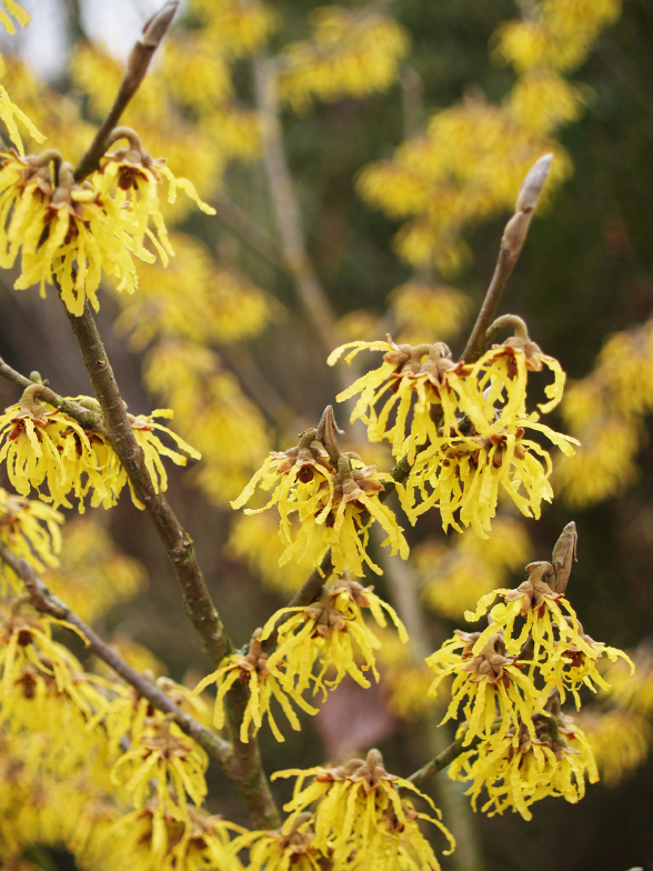 Virginische ZaubernussSchon die Ureinwohner Amerikas schätzten Hamamelis virginiana L. bei diversen Hautleiden. Sie haben sowohl ihre frischen Blätter und Zweige in Wasser eingeweicht als auch Abkochungen für die äußerliche Behandlung von Schnittwunden, Haut- und Augenentzündungen, Blutergüssen und Insektenstichen verwendet. Die Virginische Zaubernuss ist ein bis zu sieben Meter hoher baumartiger Strauch, der zur Familie der Hamamelisgewächse (Hamamelidaceae) gehört. Seine kurzgestielten, wechselständigen Blätter sind rundlich-oval mit einem ungleich kerbig gewellten Blattrand und denen des Haselnuss-Strauches sehr ähnlich. Im Spätherbst und Winter setzt kurz vor oder mit dem Laubabfall die Blüte ein.