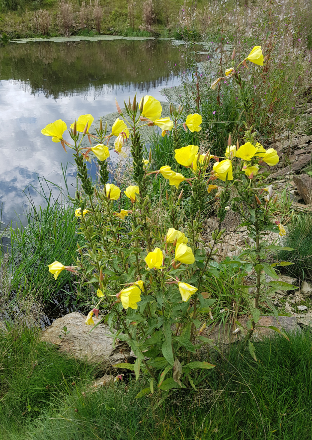 Nachtkerze Auch Oenothera biennis aus der Familie der Nachtkerzengewächse (Onagraceae) ist ursprünglich in Nordamerika beheimatet. Die Indianer zerstampften die Samen der Nachtkerze und stellten daraus einen Brei her, mit dem sie Umschläge machten, um Hautauschläge und Geschwüre zu lindern. Anfang des 17. Jahrhunderts kam Oenothera biennis nach Europa, wo sie zunächst in Parks und Gärten als Zierpflanze angesiedelt wurde. Sie verdankt ihre Beliebtheit ihren bemerkenswerten Blüheigenschaften, worauf auch ihr deutscher Name zurückgeht. So öffnen sich die Blüten erst gegen Abend, wenn es dunkel wird, wobei sie bis zum nächsten Mittag schon wieder verblüht sind.