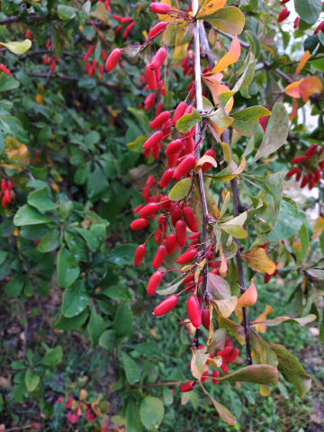 Im September bilden sich aus ihnen circa ein Zentimeter lange länglich-walzenförmige korallenrote Beeren. Diese Früchte sind genießbar, aber durch enthaltene Fruchtsäuren sehr sauer. Der saure Beerengeschmack gab der Berberitze den volkstümlichen Namen Sauerdorn, der zudem noch auf die Dornen der Pflanze verweist. Der Gattungsname Berberis leitet sich von dem arabischen Wort berberi ab, der Muschel bedeutet und auf die muschelförmigen kleinen Blütenblätter Bezug nimmt. Mit Ausnahme der Beeren ist die ganze Pflanze durch das Vorkommen an Isochinolin-Alkaloiden (vor allem Berberin) giftig. Besonders hoch ist der Alkaloidgehalt in den Wurzeln. Daher sollten weder alkaloidhaltige Blätter noch die Wurzelrinde für Teezubereitungen verwendet werden, auch wenn die Volksmedizin diese bei Gallen- und Lebererkrankungen kennt.