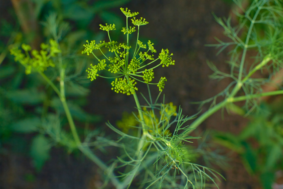 DillDie einjährige Pflanze gehört zur Familie der Doldenblütler (Apiaceae) und stammt ursprünglich aus dem Nahen Osten und Südrussland. Heute wird Dill (Anethum graveolens) weltweit kultiviert. In Deutschland gehört er zu den meistangebauten Gewürzen. Die Pflanze liebt einen sonnigen, windgeschützten Standort und bevorzugt einen durchlässigen, locker humosen Boden. Anethum graveolens ist ein Flachwurzler, der Wuchshöhen bis zu einem Meter erreicht. Seine hohlen Stängel wachsen aufrecht, sind bläulich bereift und mit feinen Rillen versehen. Von Juli bis September erscheinen endständig mehrstrahlige Blütendolden, die 10 bis 15 Zentimeter groß werden und auf die der deutsche Namen Dill zurückzuführen sein soll.