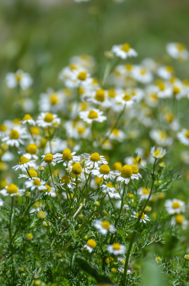 Echte Kamille Auch bei der Verwendung von Kamille sind Kontaktallergien möglich. Die Echte Kamille, Chamomilla recutita (L.) RAUSCHERT (syn. Matricaria chamomilla L. oder Matricaria recutita L.) wird schon seit altersher wegen ihrer entzündungshemmenden und krampflösenden Eigenschaften geschätzt. Sie ist ein einjähriges Kraut, das wild wachsend überall in Europa auf Feldern, Wiesen und an Wegrändern anzutreffen ist und von Mai bis September blüht. An bis zu 40 cm hohen Stängeln, die im oberen Bereich verzweigt sind, stehen zwei- bis dreifach gefiederte feine Blätter.