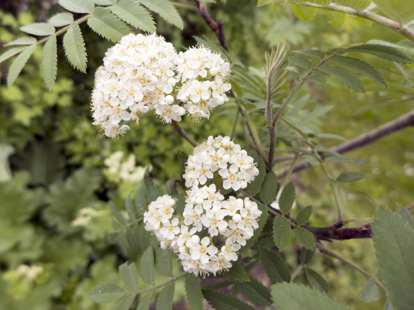 Durch Kochen kann man die Beeren schließlich vollends genießbar machen, da sich durch die hohen Temperaturen der Giftstoff in die verträgliche Sorbinsäure umwandelt. Für Vögel sind die von August bis September heranreifenden Früchte nicht giftig. Sie dienen ihnen vielmehr bis in den Winter hinein als wertvolle Nahrung. Daher wird die Eberesche auch Vogelbeere oder Drosselbeere genannt. Botanisch sind die Früchte allerdings keine Beeren. Es handelt sich vielmehr um kleine dreifächerige Apfelfrüchte, die einen Durchmesser von etwa einem Zentimeter aufweisen und drei Samen beinhalten. Eine Vielzahl kugeliger Früchte bildet einen hängenden Fruchtstand. Dieser entwickelt sich aus den kleinen weißen, etwas unangenehm riechenden Blüten, die von Mai bis Juli erscheinen.