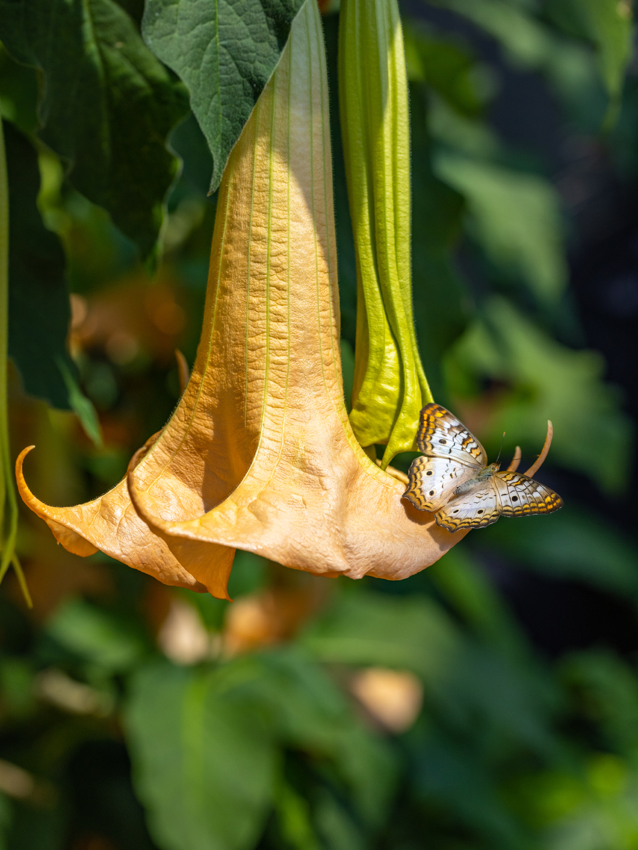 Sie sind während der gesamten Blühphase geöffnet und ihr geschwungener gelappter Kronsaum ist mit fünf lanzettlichen Kelchzipfeln versehen. Unter den verschiedenen Spezies finden sich viele weiß und gelb blühende Sorten, aber auch orange-rosa-rote wie beispielsweise Brugmansia sanguinea sind darunter. Allerdings wissen die meisten Gartenliebhaber nicht, dass es sich bei den attraktiven Pflanzen um eine gefährliche Rauschdroge handelt. Bereits die Ureinwohner Mittel- und Südamerikas verwendeten verschiedene Engelstrompetenarten zu rituellen Zwecken. Einige Stämme tranken den Saft aus frisch gepressten Blättern.