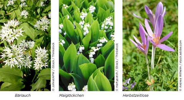 Von März bis Mai erstreckt sich die Sammelzeit für Bärlauchblätter, sie zählen zu den beliebtesten Frühlingskräutern. Die nach Knoblauch riechenden und schmeckenden Blätter werden zu Pesto oder Suppen verarbeitet und finden sich frisch in Salaten. Doch nur wer den wild wachsenden Bärlauch zweifellos erkennt, sollte ihn pflücken. Seine Blätter ähneln denen des Maiglöckchens und der Herbstzeitlosen – beides Giftpflanzen, die nicht verzehrt werden dürfen.