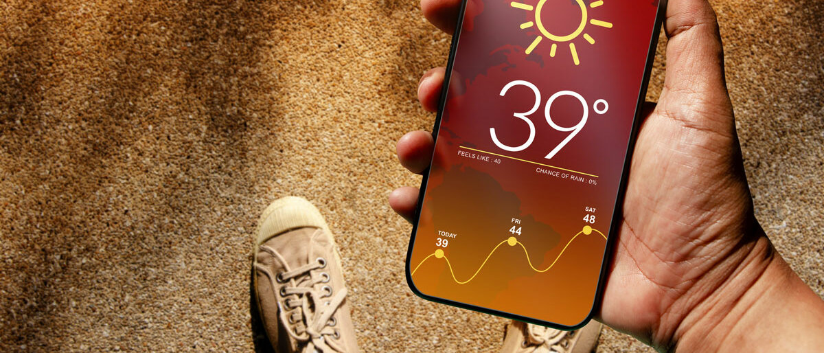 Smartphone zeigt eine Temperatur von 39 Grad Celsius an.