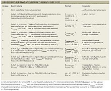 Zu welcher der acht Gruppen ein Wirkstoff gehört, lässt sich anhand der Beschreibung und Beispielmonografien beziehungsweise am einfachsten anhand der alphabetischen Liste auf der aktuellen CD des NRF erkennen. Innerhalb der Gruppen werden die Korrekturfaktoren jeweils in analoger Weise errechnet. Eine zusammenfassende Darstellung der Wirkstoffgruppen zeigt die Tabelle auf Seite 106 (online: s. Grafik weiter unten). Zur genauen Berechnung ist das NRF bzw. die CD zum NRF zu verwenden.