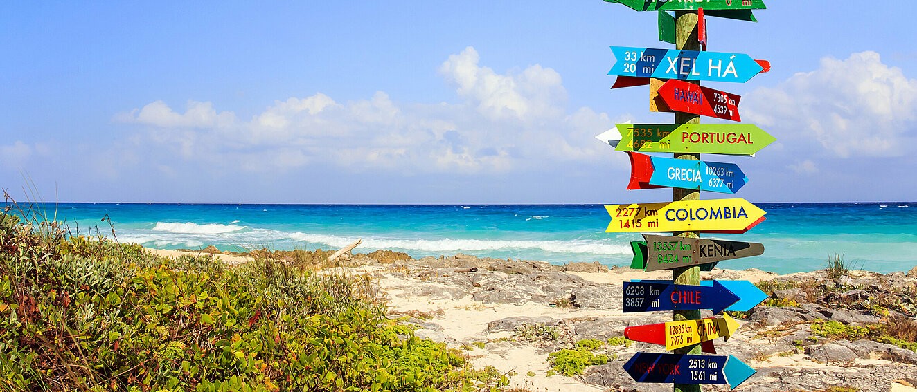 Strand mit Wegschildern.© czekma13 / iStock / Getty Images