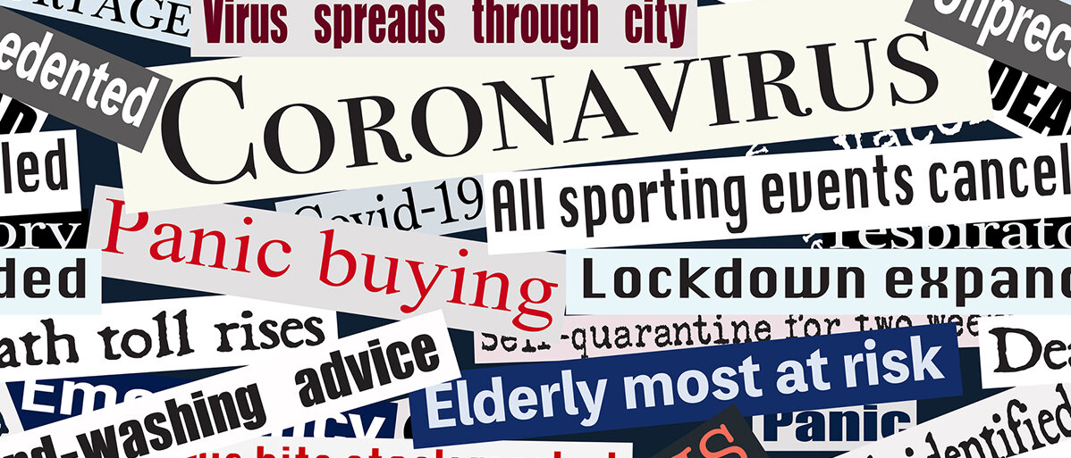 Ein Bildausschnitt voller ausgeschnittener Corona-Schlagzeilen