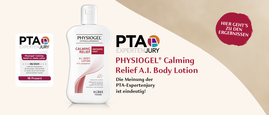 Vom 1. bis 14. September hatten 1000 Testexpert* innen die Möglichkeit, Physiogel® Calming Relief A.I. Body Lotion zu testen. Die Calming Relief-Linie beruhigt und pflegt empfindliche Haut. Speziell für gereizte und irritierte Haut eignen sich die A.I. Produkte: A.I. steht für Anti Irritationen. Diese Reihe umfasst neben der Body Lotion noch eine Handcreme, eine Creme und einen Lipidbalsam (steigender Lipidgehalt). Die Produkte sind ohne Duft- und Farbstoffe und auch bei zu Neurodermitis neigender Haut geeignet. Insgesamt 830 PTA beurteilten die Lotion für irritierte und juckende Haut.