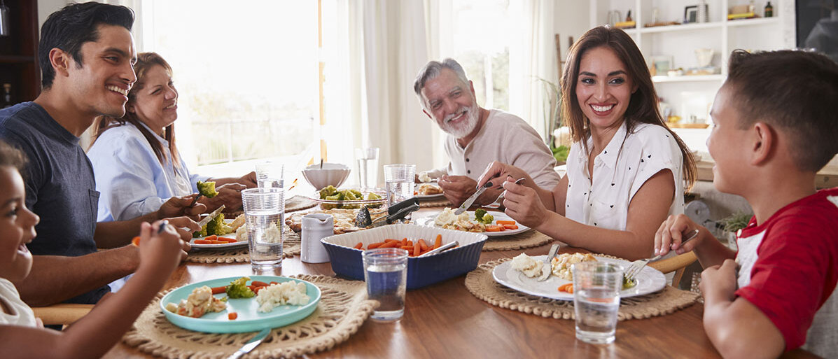 Familie sitze zusammen am Tisch und isst© monkeybusinessimages / iStock / Getty Images Plus