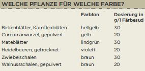 Zarte Farben, schöne Effekte Färbungen mit Naturmaterialien erzielen keine Knallfarben wie die aus dem Supermarkt, sondern erzeugen zarte Färbungen mit inneren Mustern und feinen Marmorierungen. Nicht alle Naturfarben sind automatisch gesundheitlich unbedenklich. So wurde früher lange die Krappwurzel aufgrund ihrer roten Farbstoffe zum Färben von Stoffen verwendet. Heute wird eine krebsauslösende Wirkung der in der Wurzel enthaltenen Hydroxyanthrachinone vermutet. Auf der sicheren Seite ist derjenige, der geeignete Lebensmittel oder Teedrogen aus der Apotheke verwendet.