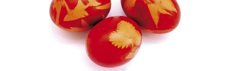 Muster Wem einfarbige Eier zu langweilig sind, kann durch ein paar Tricks Muster auf die Schale zaubern: Die zu färbenden Eier werden mit einigen Blättern und Blüten in eine alte Strumpfhose gegeben und dann erst in den Topf gelegt. Eine andere Technik ist, mithilfe von Säure die obere Farbschicht wegzuätzen. Dazu taucht man ein Wattestäbchen oder Pinsel in etwas Essig und betupft damit das frisch gefärbte Ei. Je länger die Säure auf diesem verbleibt, desto stärker bleicht die behandelte Stelle aus. Die fertigen Eier können mit etwas Öl oder einer Speckschwarte schön glänzend poliert werden.