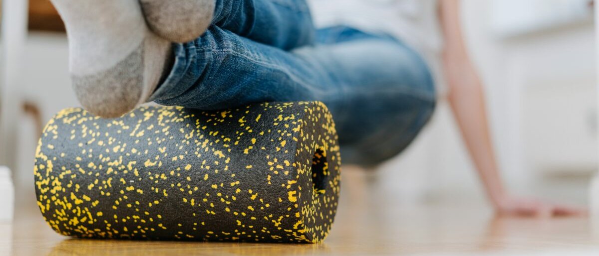 Die dritte Säule ist die Faszienrolle: Rücken und Gliedmaßen werden mit der Schaumstoffrolle abgerollt.