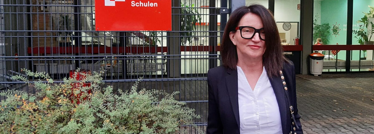 Referentin und Apothekerin Dr. Ute Koch vor Beginn der Fortbildungsveranstaltung an der Ludwig-Fresenius-Schule in Frankfurt.© Svenja Perlowski / Aristo Pharma