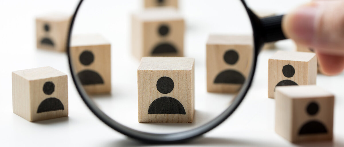 Eine Lupe vergrößert Personenschemen auf Holzklötzchen © Kenishirotie / iStock / Getty Images Plus
