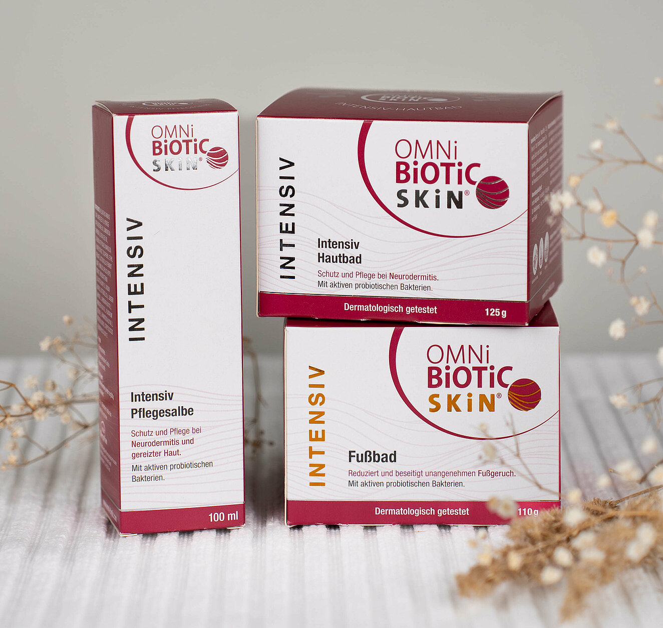 Übrigens: Auch Käsefüße können die Folge einer Dysbiose des Hautmikrobioms sein, und auch hier spielt Staphylococcus aureus eine Rolle. Deshalb gibt es OMNi-BiOTiC SKiN® auch als Intensiv-Fußbad.