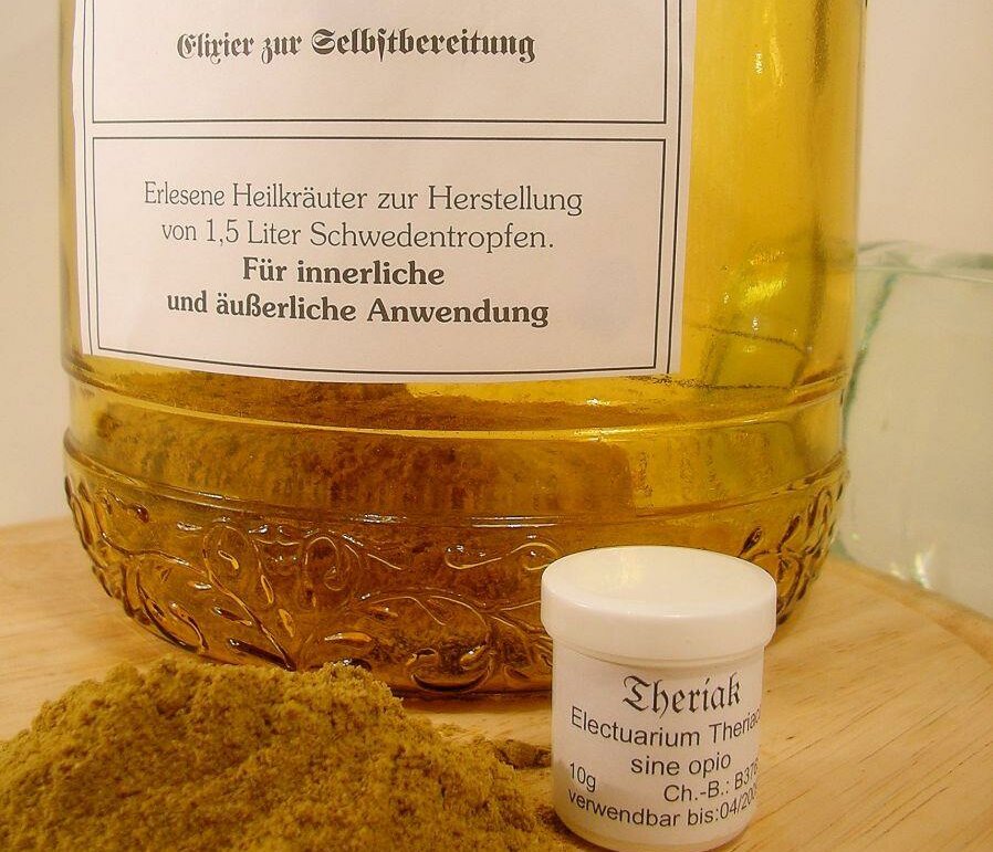 Vorab: Den Theriak gibt es nicht; die pastöse Zubereitung – im Aussehen Rübensirup nicht unähnlich – enthielt und enthält mannigfaltige Bestandteile. Sein Name kommt vom griechischen „theriakos“ und heißt übersetzt „Arznei gegen Gift“. Ein Antidot also?