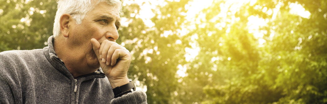 Symptome COPD wird, wie gesagt, in erster Linie durch Rauchen verursacht. Wesentliches Merkmal der COPD ist ein aufgrund der Gewebeveränderungen in der Lunge auftretender Sauerstoffmangel. Typisches Anzeichen ist Husten, der mit der Zeit immer hartnäckiger wird und die Betroffenen vor allem morgens quält. Allgemein ist dieser Husten als „Raucherhusten“ bekannt. Hinzu kommt Auswurf, der langsam zäher wird und immer schwerer abzuhusten ist. Die Patienten leiden unter Atemnot, zunächst nur bei Belastung, später auch in Ruhe. Die Krankheit hat im Regelfall einen progredienten, also einen fortschreitenden Verlauf. Da die Krankheit von Auswurf, Husten und Atemnot gekennzeichnet ist, spricht man landläufig auch von „AHA-Symptomen. SL06, Krankheiten von A-Z“, „C“, „COPD“, „Symptome“, gibt einen ausführlichen Überblick über dieses Thema. Bei auftretender Atemnot muss davon ausgegangen werden, dass die Krankheit bereits weit fortgeschritten ist.