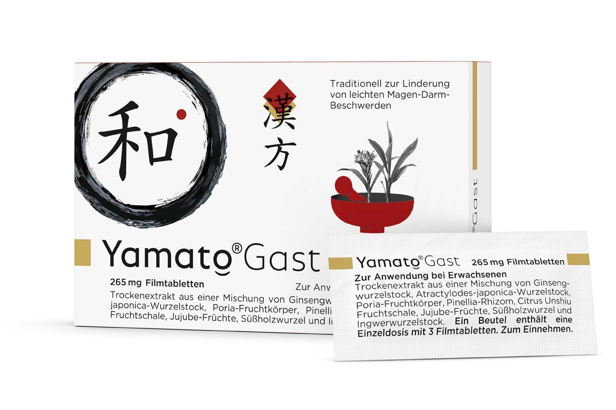 In dieser Pflanzenheilkunde wurde bereits im 16. Jahrhundert eine Rezeptur entwickelt, die bis heute erfolgreich Anwendung findet. Sie heißt Rikkunshito. Die positive Wirkung der Kampo-Rezeptur insbesondere bei stressbedingten Magen-Darm-Beschwerden wurde bereits in mehreren japanischen Studien belegt.2,3 Mit Yamato®Gast können nun auch Patienten weitab von Japan davon profitieren. Es ist das erste in Europa zugelassene Fertigarzneimittel aus der japanischen Kampo-Medizin und enthält die Heilpflanzenkombination Rikkunshito.
