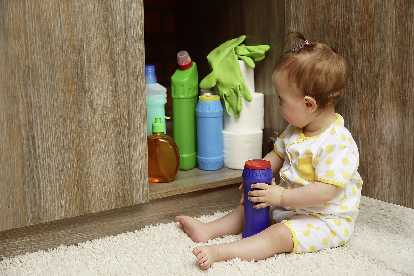 - Alle Produkte mit gefährlichen Substanzen (z. B. Haushaltsreiniger, Chemikalien, Lacke, Parfüm, Zigaretten) verschlossen und kindersicher aufbewahren.