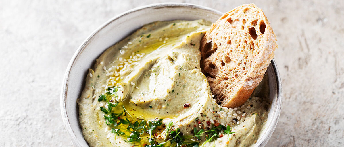 Das cremigere Mutabal enthält - im Gegensatz zu Baba Ganoush - auch Tahini und Joghurt. "Der Joghurt hilft, dass sich Tahini und Zitronensaft miteinander verbinden und es nicht gerinnt", erklärt Haddad. Daher nimmt man am besten einen Joghurt mit zehn Prozent Fettgehalt, wie etwa griechischen oder türkischen Joghurt.