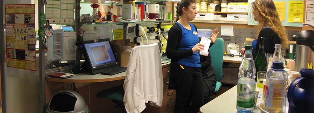 Über eine Handy- App können alle darauf zugreifen. Diana Walther, die PTA, die uns auf diese Apotheke aufmerksam gemacht hat, sitzt bei unserem Gespräch dabei. Man ist hier miteinander verbunden. Franziska Hoefer, die die Apotheke in vierter Generation leitet, berichtet von den Organisationsformen: Es gibt unterschiedliche Teams, sagt sie, zuständig fürs Backoffice, für den HV, die Kosmetik, das Labor, die Rezeptur, die Buchhaltung oder auch die Reinigung.