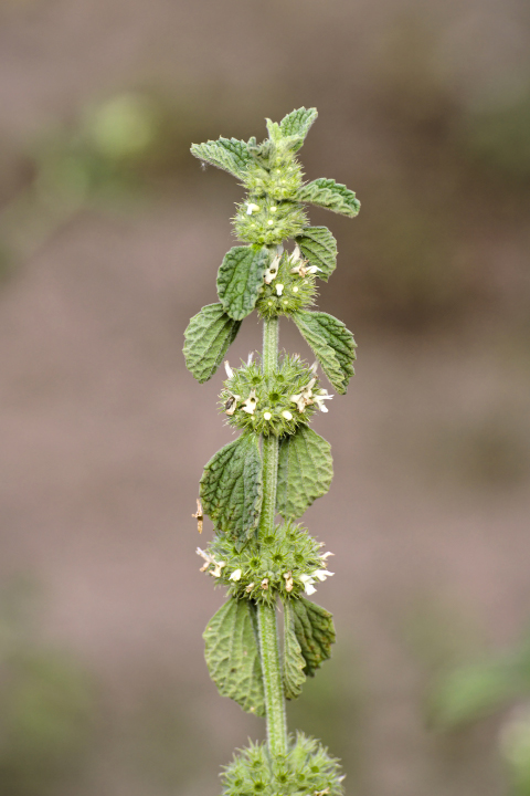 Klausenfrüchte mit Widerhaken Der Andorn, auch Helfkraut oder Mariennessel genannt, gehört zur Familie der Lippenblütler; aus dicken, spindelförmigen Wurzeln wachsen quadratische, hohle Stängel mit weißen Drüsenhaaren. Die grünen Blätter sind eiförmig, spitz zulaufend, leicht gezähnt und ebenfalls behaart. Sie verfügen über eine tief eingeprägte Blattnervatur. Zwischen Anfang Juni und Ende August blüht der Andorn; dann bilden sich kugelige Scheinquirle mit vielen kleinen weißen Blüten aus den Blattachseln. Am Ende erscheinen dann Klausenfrüchte; ähnlich wie Kletten verfügen sie über winzig kleine Widerhaken und werden so von vorbeistreifenden Tieren „abgesammelt“ und über den Wald verteilt.