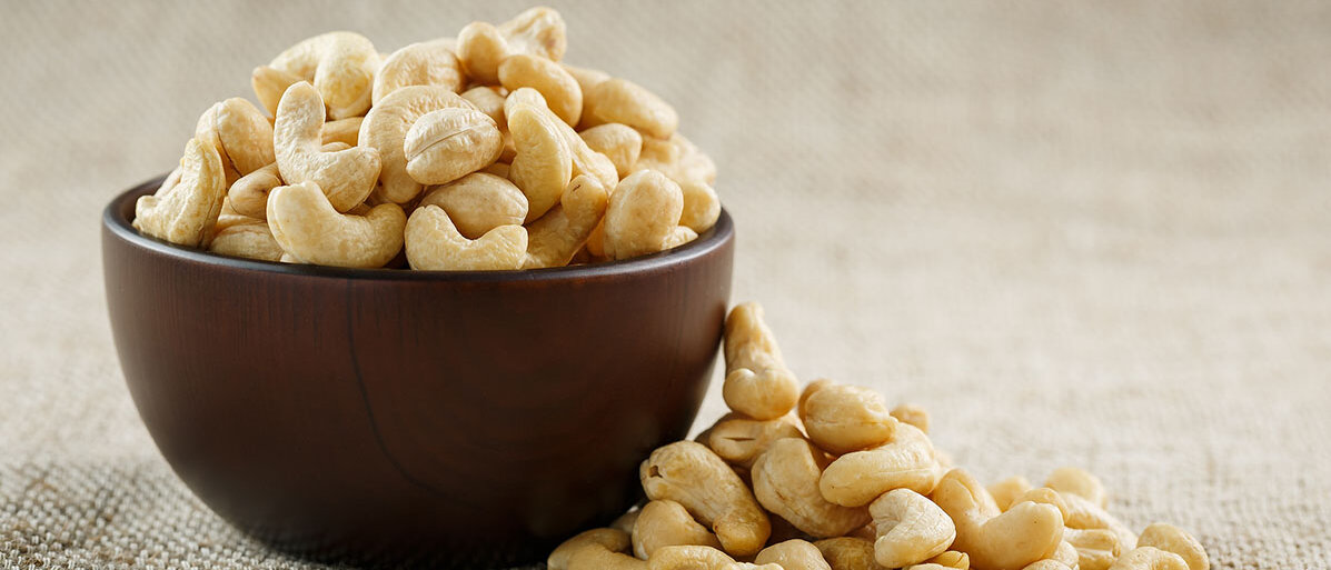 - Vitamine und Mineralstoffe: Cashewkerne liefern B-Vitamine und die Vitamine A und E, die unter anderem für gesunde Haut und Augen wichtig sind. Und auch die Mineralstoffe Magnesium, Calcium und Eisen. Sie sind für die Funktion von Nervensystem und Muskeln nötig, sorgen aber auch für starke Knochen und Zähne.