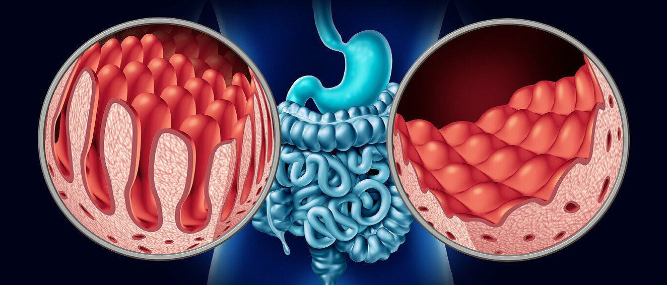 Die Folgen: Die Schleimhautzotten im Dünndarm bilden sich zurück und die Oberfläche der Darmschleimhaut verkleinert sich. Außerdem bilden sich Ansammlungen von Lymphozyten innerhalb der Schleimhaut. Dadurch können weniger Nährstoffe aus der Nahrung aufgenommen werden, was längerfristig zu Nährstoffmangelsyndromen führen kann, die wiederum zahlreiche unterschiedliche Beschwerden verursachen können.