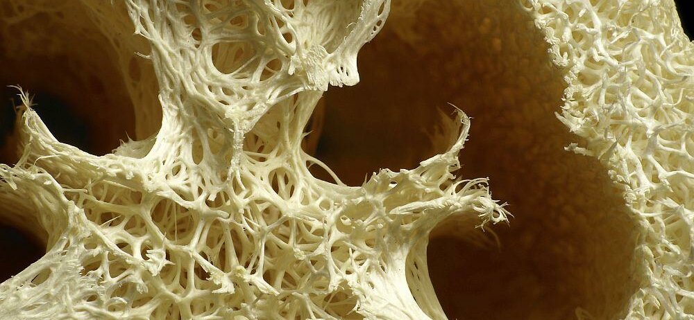 Innen, in der Substantia spongiosa oder Spongiosa, befindet sich ein schwammartiges Gerüstwerk feiner Knochenbälkchen. Dieses Geflecht besteht aus horizontal und vertikal verlaufenden Strängen, die die Bewegungen und die davon ausgehenden Kräfte auffangen. Ändert sich die Belastung, kann die Mikroarchitektur der Knochenbälkchen umgebaut werden.