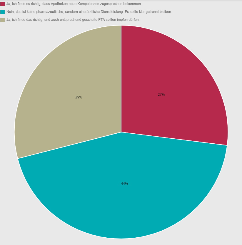 - 44 % stimmten für „Nein, das ist keine pharmazeutische, sondern eine ärztliche Dienstleistung. Es sollte klar getrennt bleiben.“