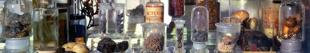Sammlung alter Medikamente Folgt man der steilen Treppe in den ersten Stock, betritt man zuerst einen Raum mit der Bezeichnung Materia Medica Obsoleta. Der Fokus der hier ausgestellten Heilmittel und Ingredienzien liegt auf der Alten Medizin, also einer medizinischen Praxis vor dem industriellen Umbruch im 19. Jahrhundert. Dicht drängen sich die Präparatgläser in den Vitrinen, in zwei oder gar drei Reihen hintereinander.